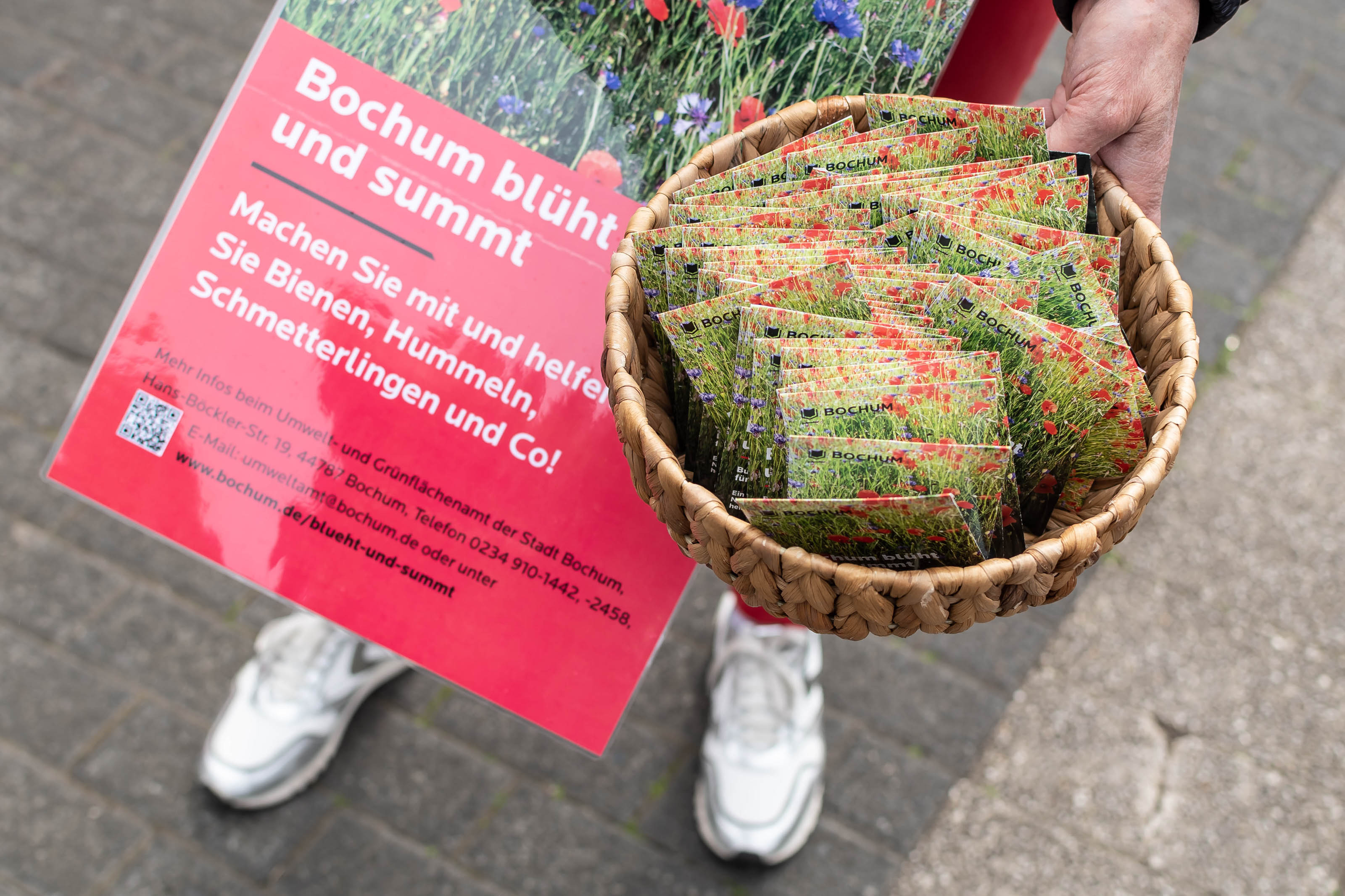 Deshalb startete im letzten Jahr die Stadt Bochum die Kampagne „Bochum blüht und summt“ und verteilte 10.000 Samentütchen mit einer Wildblumenmischung an die Bochumerinnen und Bochumer. Eine tolle Aktion. Und auch in diesem Jahr verschenkt die Stadt Bochum wieder 10.000 Tütchen!