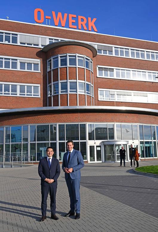 Einen starken Eindruck gewann Tsukubas Oberbürgermeister vom Strukturwandel auf MARK 51°7. Oliver Dresen, Geschäftsführer der Entwicklungsgesellschaft Bochum Perspektive, erläuterte den Reaktivierungsprozess, der nach Aufgabe des Opel-Standorts begann und mittlerweile als Vorbild für ähnliche Neunutzungen steht, so aktuell für das Saarland, wo Ford die Fabrikation in Saarlouis einstellen will. In Bochum entstehen auf der ehemaligen Autowerksfläche bereits neue Forschungsinstituten und Produktionsstätten. „99 Prozent sind vermarket“, konnte Oliver Dresen berichten. „Es entsteht ein weites Spektrum an neuen Jobs.“ Die Nachfrage würde befeuert durch NRWs Entwicklung zum Start-up-Hotspot in Deutschland und Bochums gutes Gründerklima. „Das Problem in Tsukuba ist, dass Start-ups, wenn sie wachsen, oft nicht bleiben“, bedauerte Dr. Tatsuo Igarashi, der dies ändern möchte: „Wir wollen sie in unserer Stadt halten.“ Die Delegation schaute sich daher unter anderem auch den Makerspace an, den die Ruhr-Universität 2022 für Gründerinnen und Gründer aus dem Hochschulsektor auf MARK 51°7 errichtet hat. „Wir bieten ihnen kreativen Raum, in dem Start-up-Ideen geboren und ausprobiert werden können“, erläuterte Leiter Dirk W. Hansmeier.